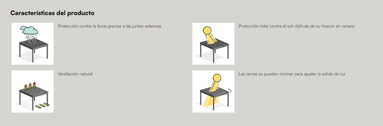 Nuestras pérgolas bioclimáticas están diseñadas para ser instaladas y utilizadas sin más modificaciones, de acuerdo con sus instrucciones de montaje.