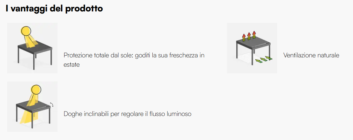 Le nostre pergole bioclimatiche sono progettate per essere installate e utilizzate senza ulteriori modifiche, seguendo le istruzioni di montaggio.
